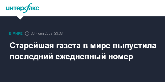 Старейшая газета в мире выпустила последний ежедневный номер