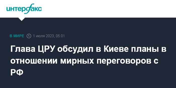 Глава ЦРУ обсудил в Киеве планы в отношении мирных переговоров с РФ