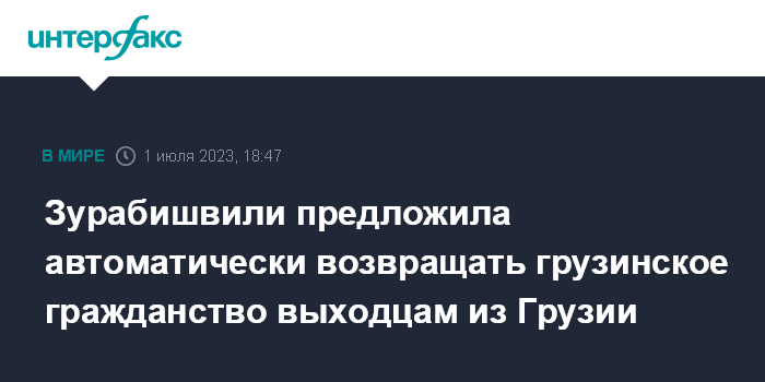 При этом Зурабишвили отметила, что возвращение утерянного грузинского гражданства должно происходить "фактически автоматически, если то или иное лицо не представляет угрозу государству".