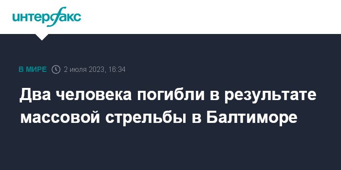 Москва. 2 июля. INTERFAX.RU - Два человека были убиты и еще 28 были ранены в результате стрельбы в Балтиморе, сообщает The Guardian.