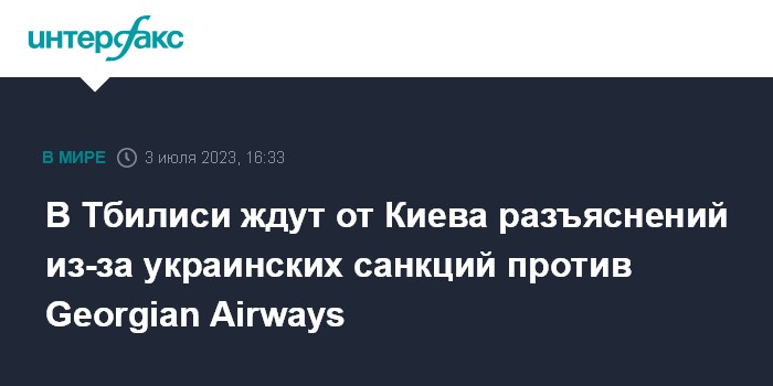 В Тбилиси ждут от Киева разъяснений из-за украинских санкций против Georgian Аirways