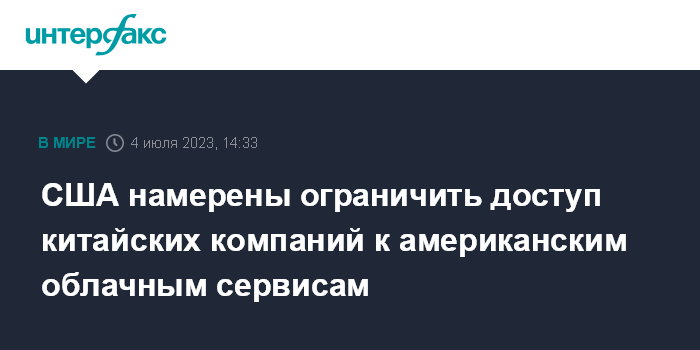 США намерены ограничить доступ китайских компаний к американским облачным сервисам