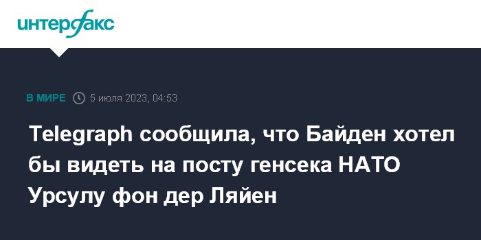 Telegraph сообщила, что Байден хотел бы видеть на посту генсека НАТО Урсулу фон дер Ляйен