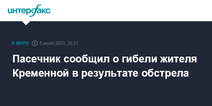 Москва. 5 июля. INTERFAX.RU - В Луганской народной республике несколько раз был обстрелян город Кременная, там погиб один мирный житель и еще двое были ранены, сообщил в соцсетях врио главы региона Леонид Пасечник.