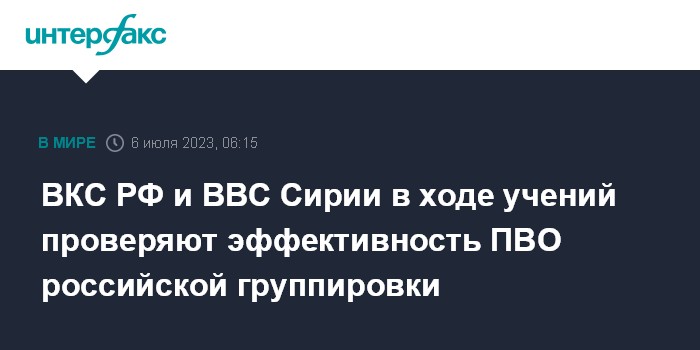 Москва. 6 июля. INTERFAX.RU - Вопросы контроля воздушного пространства Сирии отрабатывают Воздушно-космические силы России и ВВС САР в ходе совместных учений, сообщило российское министерство обороны.