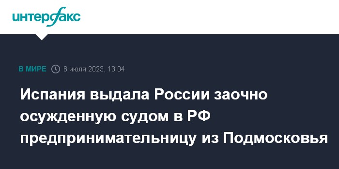 Испания выдала России заочно осужденную судом в РФ предпринимательницу из Подмосковья