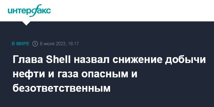 Глава Shell назвал снижение добычи нефти и газа опасным и безответственным