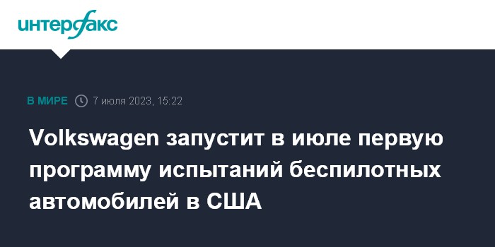 Москва. 7 июля. INTERFAX.RU - Volkswagen Group of America (VWGoA), американское подразделение германской Volkswagen AG, в июле запустит свою первую программу испытаний беспилотных автомобилей, говорится в пресс-релизе VWGoA.