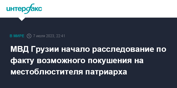 МВД Грузии начало расследование по факту возможного покушения на местоблюстителя патриарха