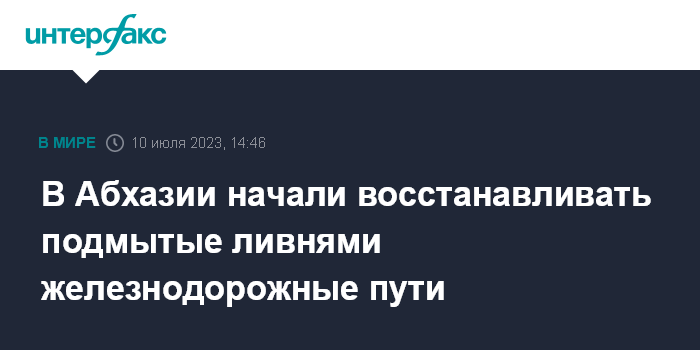 Москва. 10 июля. INTERFAX.RU - В Гагрском районе Абхазии во время ливня 9 июля потоки воды подмыли участки железнодорожных путей, из-за чего там приостановлено движение поездов, сообщил глава администрации района Юрий Хагуш президенту республики Аслану Бжания. Пути начинают восстанавливать.