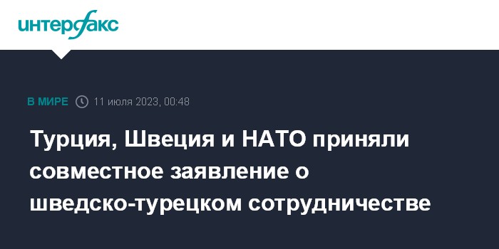 Турция, Швеция и НАТО приняли совместное заявление о шведско-турецком сотрудничестве