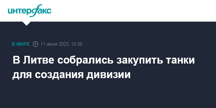 Москва. 11 июля. INTERFAX.RU - Литва намерена создать дивизию, предпринимаются действия для закупки танков, заявил журналистам министр обороны страны Арвидас Анушаускас.