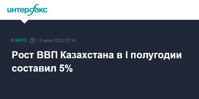 Москва. 12 июля. INTERFAX.RU - Экономика Казахстана по итогам января-июня 2023 года выросла на 5%, сообщил министр национальной экономики Казахстана Алибек Куантыров.