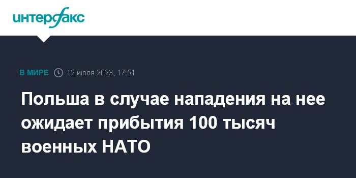 Москва. 12 июля. INTERFAX.RU - Польше в случае необходимости смогут оказать поддержку до 100 тысяч солдат НАТО, сообщил "Польскому радио" президент страны Анджей Дуда.