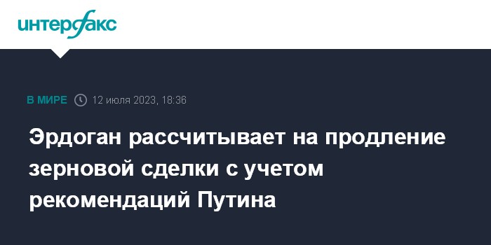 Эрдоган рассчитывает на продление зерновой сделки с учетом рекомендаций Путина