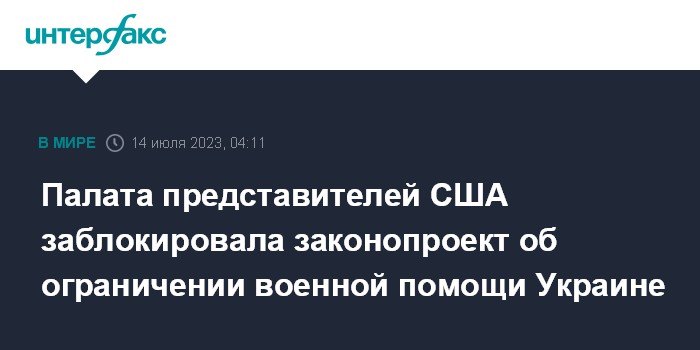 Москва. 14 июля. INTERFAX.RU - Ряд выдвинутых республиканцами поправок в проект Закона о национальной обороне на 2024 финансовый год (NDAA) о сокращении или прекращении военной помощи Украине был заблокирован палатой представителей конгресса США, сообщили американские СМИ.