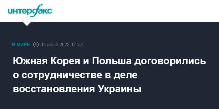 Южная Корея и Польша договорились о сотрудничестве в деле восстановления Украины