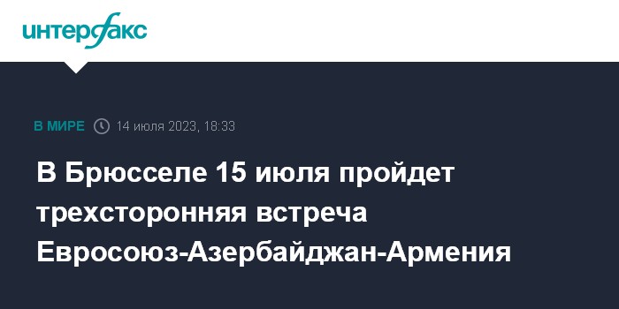 В Брюсселе 15 июля пройдет трехсторонняя встреча Евросоюз-Азербайджан-Армения