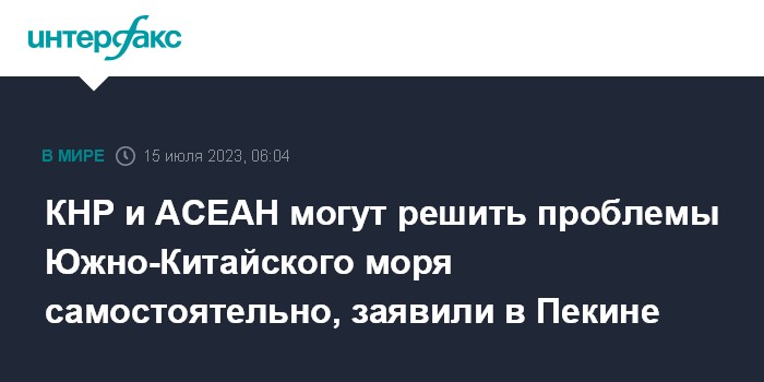 КНР и АСЕАН могут решить проблемы Южно-Китайского моря самостоятельно, заявили в Пекине