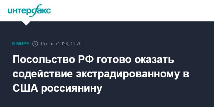Посольство РФ готово оказать содействие экстрадированному в США россиянину