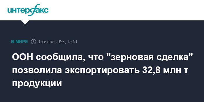 Срок действия инициативы истекает 17 июля, напоминают в ООН. Соглашение продолжит работать, если участники (Россия, Украина, Турция, ООН) его продлят.