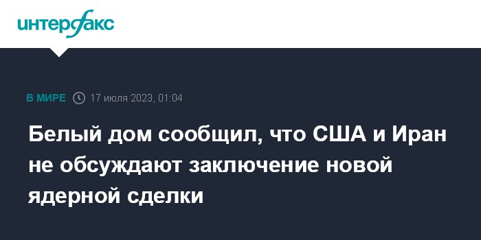 Белый дом сообщил, что США и Иран не обсуждают заключение новой ядерной сделки