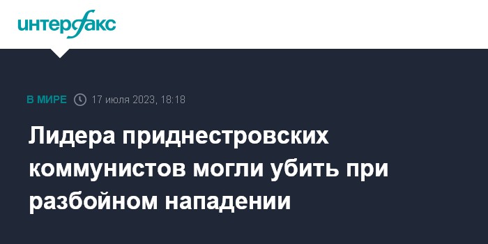 Лидера приднестровских коммунистов могли убить при разбойном нападении