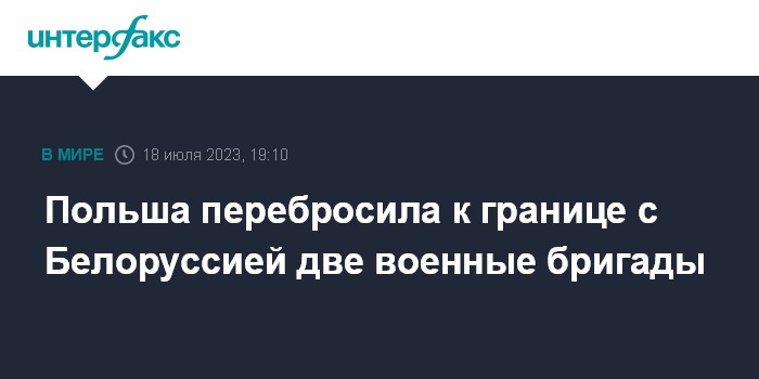 Москва. 18 июля. INTERFAX.RU - Польша перебросила к границе с Белоруссией две военные бригады, сообщил министр национальной обороны Польши Мариуш Блащак.