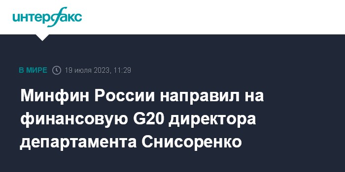 Минфин России направил на финансовую G20 директора департамента Снисоренко