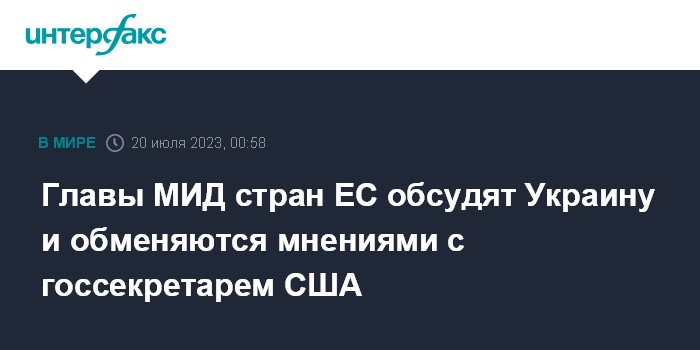 Последующая дискуссия на уровне глав МИД сфокусируется на трех темах: обязательствах ЕС перед Украиной в области безопасности, украинской "формуле мира" и текущих и будущих информационно-пропагандистских усилиях союза по продвижению этой инициативы; продовольственной безопасности, "в том числе последствиях решения России об истечении срока действия черноморской зерновой инициативы 17 июля".