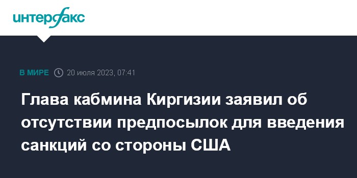 Глава кабмина Киргизии заявил об отсутствии предпосылок для введения санкций со стороны США