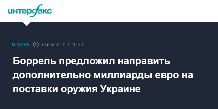 "Боррель выдвинул предложение направить еще миллиарды евро на вооружения и экипировку", - информирует агентство.