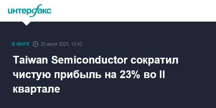 Taiwan Semiconductor сократил чистую прибыль на 23% во II квартале