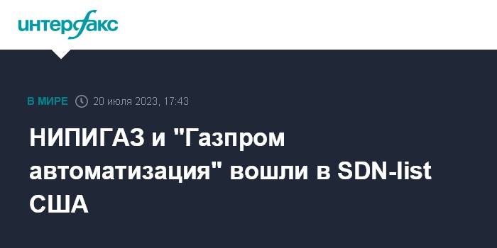 По сообщению OFAC, также в SDN-list включены ООО "НИПИГАЗ АКТИВ" и ООО "НИПИГАЗ ИТ".