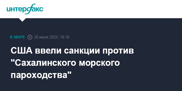Москва. 20 июля. INTERFAX.RU - ПАО "Сахалинское морское пароходство" ("СахМП", SASCO) включено в санкционный список США, сообщил американский Минфин.