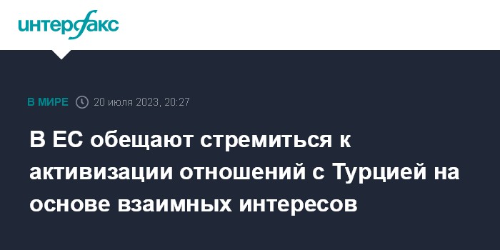 Москва. 20 июля. INTERFAX.RU - В Брюсселе убеждены во взаимной пользе прочных отношений между Евросоюзом и Турцией, заявил высокий представитель ЕС по иностранным делам Жозеп Боррель.