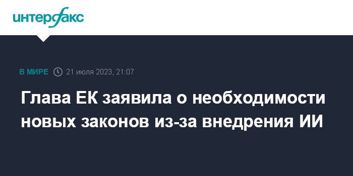 Глава ЕК заявила о необходимости новых законов из-за внедрения ИИ