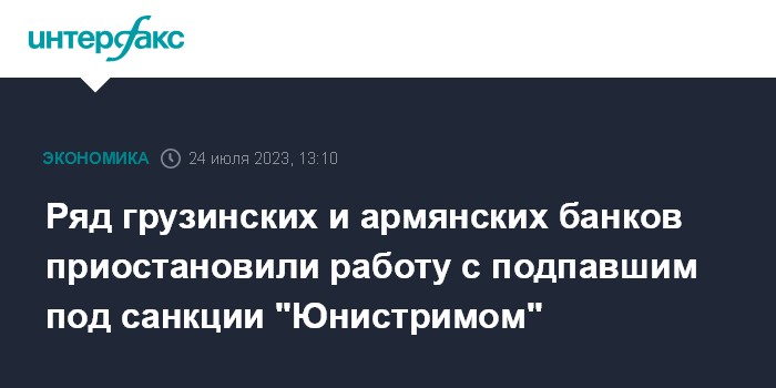 Ряд грузинских и армянских банков приостановили работу с подпавшим под санкции "Юнистримом"
