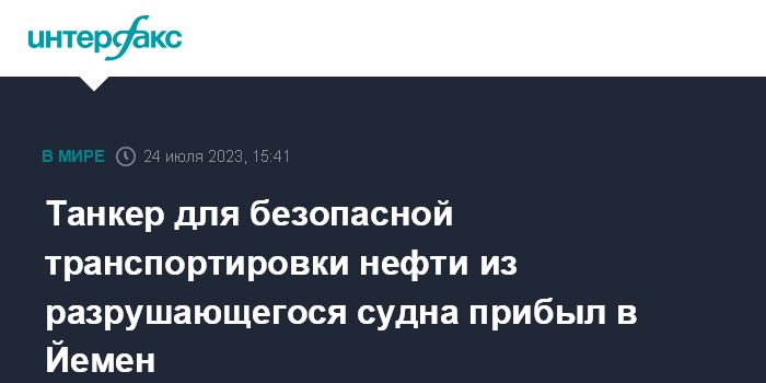 Танкер для безопасной транспортировки нефти из разрушающегося судна прибыл в Йемен
