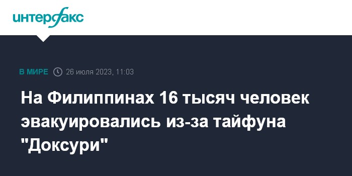 На Филиппинах 16 тысяч человек эвакуировались из-за тайфуна "Доксури"