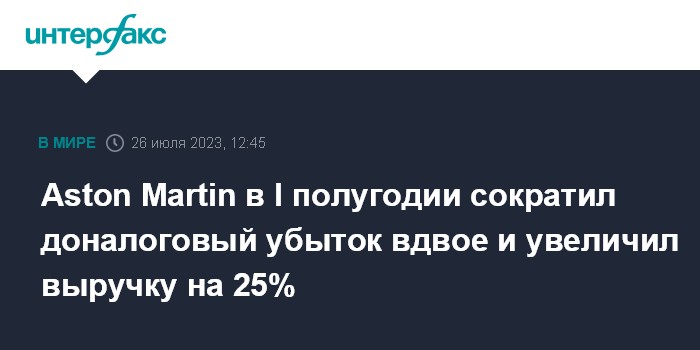 Aston Martin в I полугодии сократил доналоговый убыток вдвое и увеличил выручку на 25%