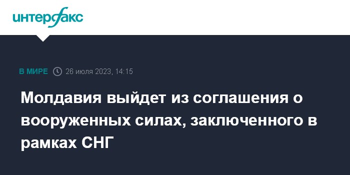 Москва. 26 июля. INTERFAX.RU - Молдавия выходит из соглашения о вооруженных силах и пограничных войсках, заключенного в рамках СНГ.