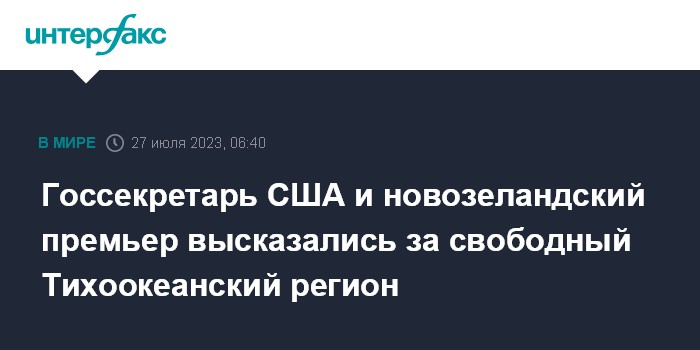 Госсекретарь подчеркнул важность региона для Соединенных Штатов и выразил уверенность в том, что США и Новая Зеландия "продолжат совместную работу по привлечению и поддержке партнеров".