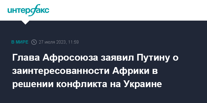 Глава Афросоюза заявил Путину о заинтересованности Африки в решении конфликта на Украине