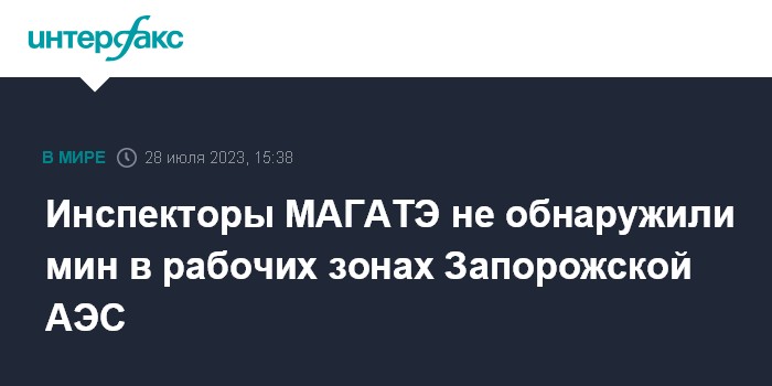 "Эксперты МАГАТЭ провели дополнительные инспекции и обходы на Запорожской АЭС за последнюю неделю, пока что не было обнаружено какой-либо тяжелой военной техники, взрывчатых веществ или мин, однако они все еще ожидают предоставления доступа к крышам зданий реакторов", - приводятся в опубликованном 20 июля заявлении МАГАТЭ слова главы агентства Рафаэля Гросси.