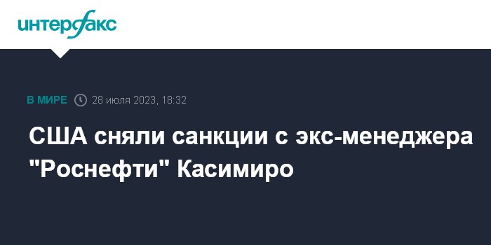 Москва. 28 июля. INTERFAX.RU - США сняли санкции с бывшего первого вице-президента "Роснефти" Дидье Касимиро, который был включен в SDN List как президент Rosneft Trading S.A., сообщило OFAC.