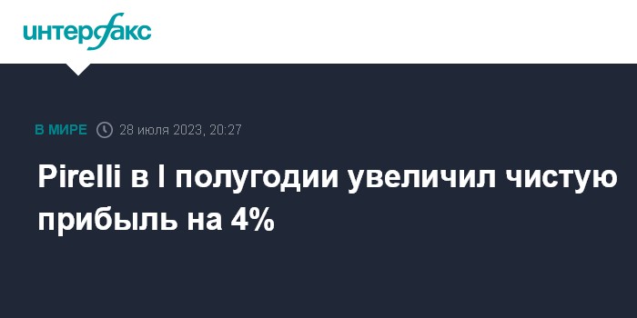 Чистая прибыль Pirelli во втором квартале выросла на 3,6% до 127,6 млн евро, выручка – на 3,7% до 1,738 млрд евро.