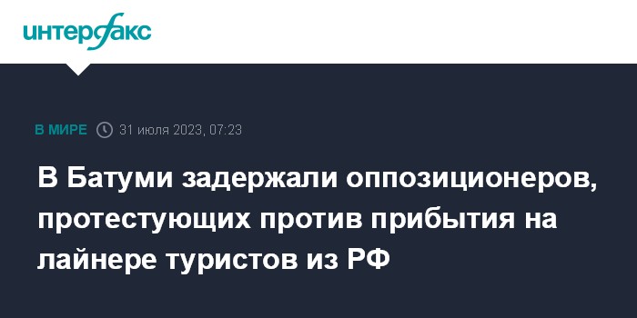 Ранее 27 июля грузинские оппозиционеры также выступили против захода в Батуми из Сочи лайнера Astoria Grande, утверждая, что находящиеся на его борту российские граждане нарушают законодательство Грузии.