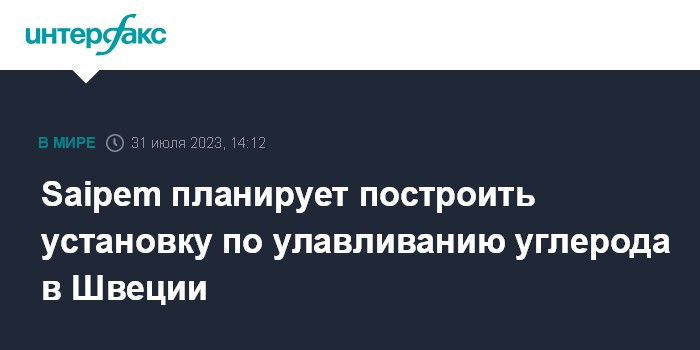 Saipem планирует построить установку по улавливанию углерода в Швеции