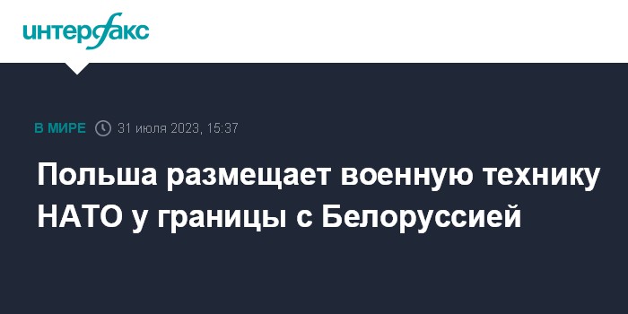Москва. 31 июля. INTERFAX.RU - Польша размещает военную технику НАТО у границы с Белоруссией, сообщает в понедельник гостелеканал "Беларусь 1".